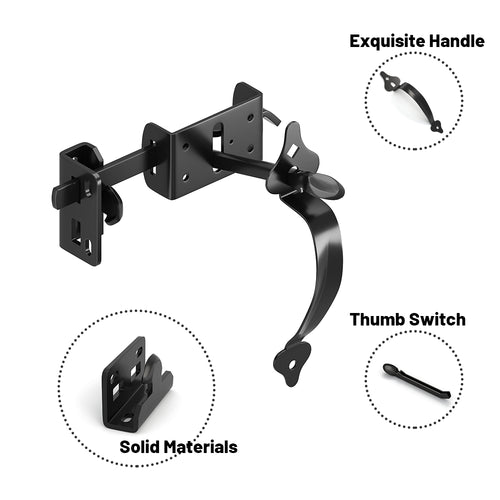 Self-Locking Fence Gate Latch With Handle, Heavy Duty Vinyl Post Mount Automatic Self-Closing Wooden Gate Hardware, Gravity Lever Door Latches for Outdoor/Secure Pool/Yard/Garden