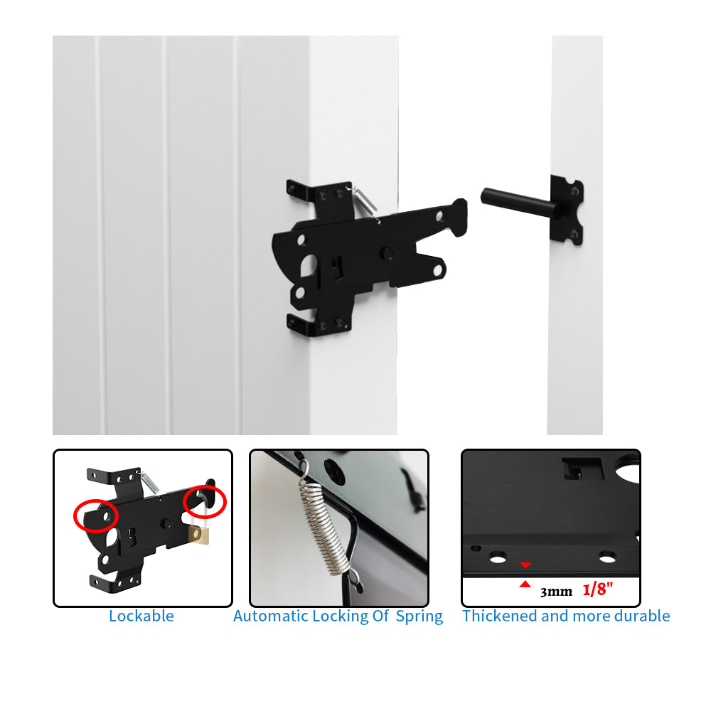 • Multi-Surface Versatility: Secures wood, vinyl, aluminum, and metal gates (Screws upgrade recommended for metal). Ideal for pools, gardens, farms, barns, pet enclosures, decks, and perimeter fencing.
